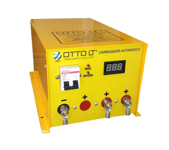O carregador possui flutuação automática, que mantém a bateria em carga ideal sem sobrecarregar, além de recursos de proteção contra subcorrente e sobrecorrente, garantindo operação segura. Também inclui disjuntor de proteção geral, fusível de segurança e voltímetro digital para monitoramento preciso da tensão.